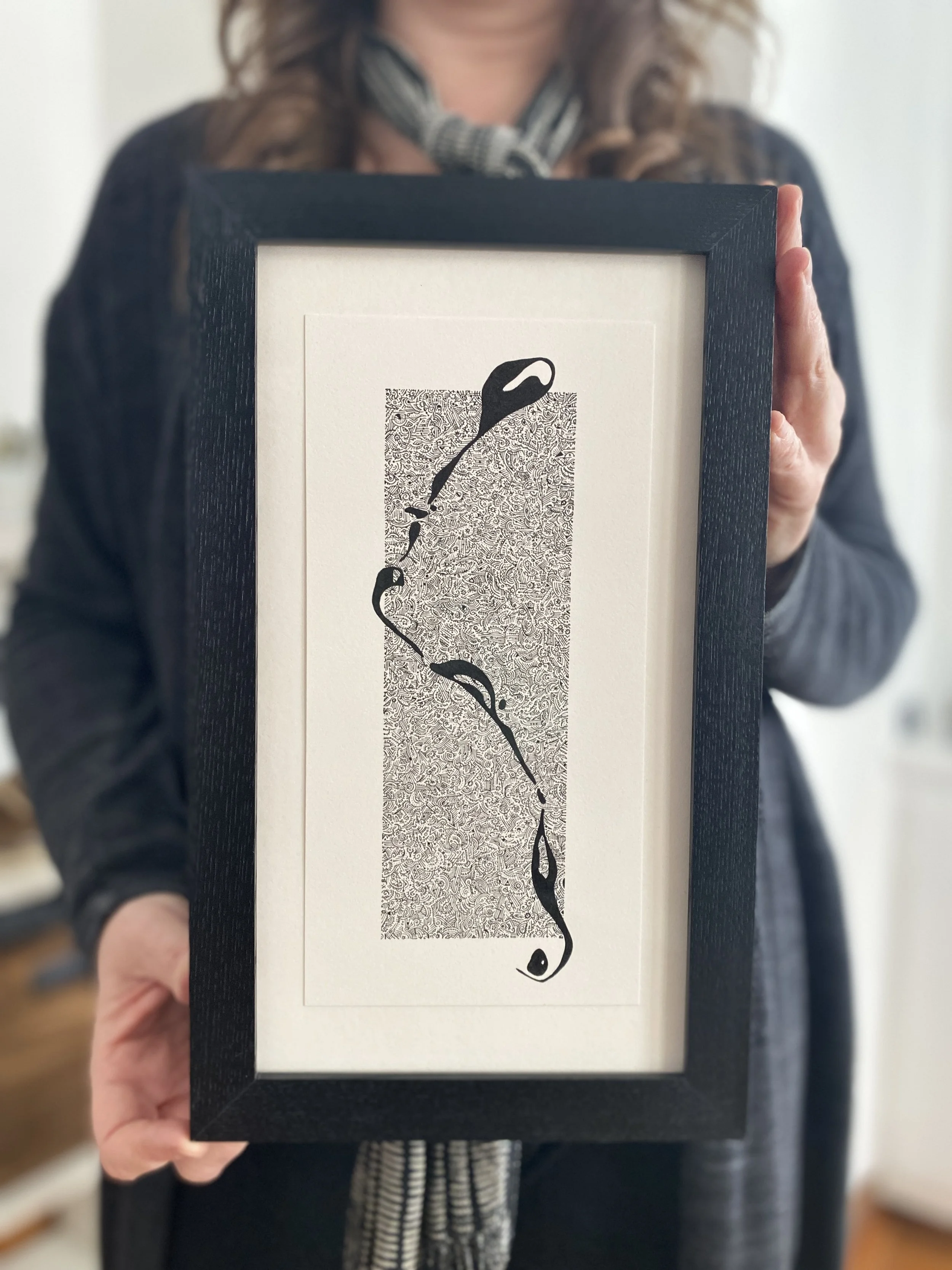 Framed Piece: 7 1/4”W x 12 3/8”H x 1 1/2”D